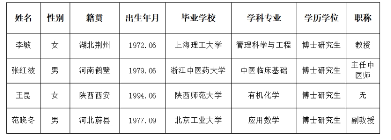 通过公开发布招聘计划、遴选简历、面试、政审、人才工作领导小组会议、校长办公会议等程序,经体检合格后确定下列人员为我单位拟聘用人员,并公示如下: