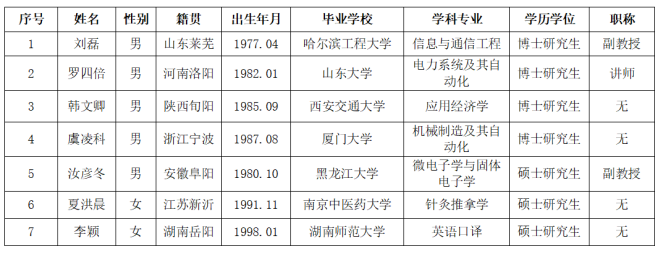 通过公开发布招聘计划、遴选简历、面试、政审、人才工作领导小组会议、校长办公会议等程序,经体检合格后确定下列人员为我单位拟聘用人员,并公示如下: