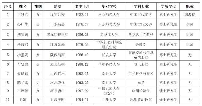 通过公开发布招聘计划、遴选简历、面试、政审、人才工作领导小组会议、校长办公会议等程序,经体检合格后确定下列人员为我单位拟聘用人员,并公示如下: