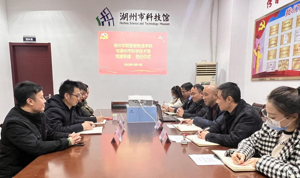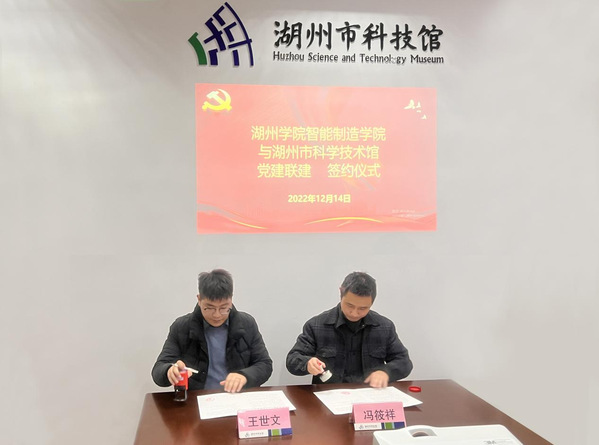 为深入学习贯彻党的二十大精神,进一步加强基层党建工作,激活党建资源,延伸党建触角,推动学校学生支部党组织与地方单位互促互进,提升党建工作活力,形成“党建引领,实干争先,互帮互促,人才赋能”的基层党建工作格局。12月14日下午,智能制造学院学生党支部与湖州科技馆党支部以“党建联建聚合力·校地共建促发展”为主题开展党建联建签约仪式。智能制造学院党委副书记、副院长,学工办主任,机械类学生支部书记,市科协党组成员、副主席、党总支书记沈维勇,市科技馆副馆长,科技馆支部书记冯筱祥等参加活动。