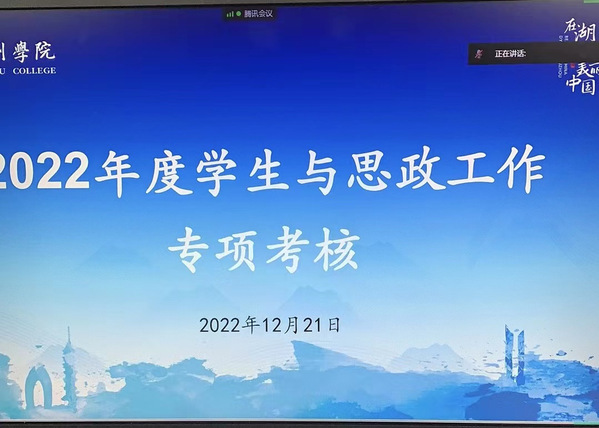 12月21日上午,学校举行2022年度学生与思政工作考核会,本次考核会采取线上方式进行,主要考核创新特色亮点工作。校党委副书记唐华,相关职能部门负责人、各二级学院学生工作负责人以及全体辅导员参加会议。会议由学工部部长主持。