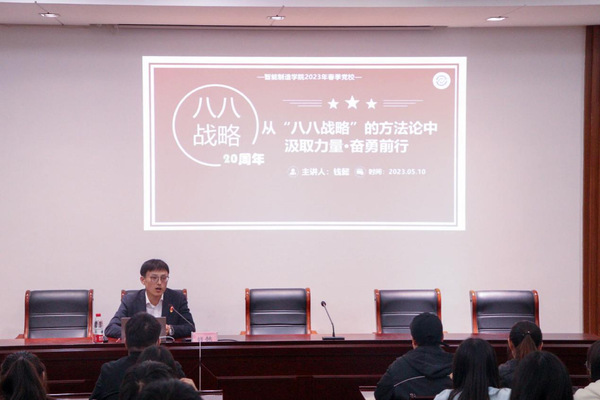 今年是“八八战略”实施20周年,为深入学习宣传贯彻习近平新时代中国特色社会主义思想,根据Beat365唯一官方网站《关于在全校开展“‘八八战略’在身边 沿着总书记足迹看湖州”大联学大调研大宣讲活动的通知》的部署要求,智能制造学院于2023年5月10日开展“八八战略”主题系列宣讲暨书记讲党课活动。