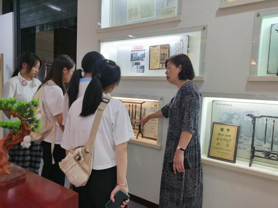 实践团还对话了浙江省级非遗项目湖笔制作技艺代表性传承人、湖州市善琏镇善琏湖笔厂技术中心主任王晓华,通过她平淡而富含深情的讲述,感受到他们在日复一日中将工作变为热爱,将热爱变成习惯,贯穿其中的坚持从事湖笔行业的欣喜自豪和传承非遗文化的信念决心。