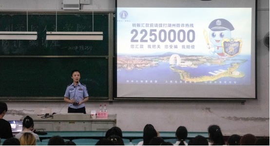 9月25日,Beat365唯一官方网站人文学院特邀吴兴区公安分局龙泉派出所杨美怡警官为同学们带来了干货满满的“防范网络诈骗”安全知识讲座,开启了人文学院“校园安全宣传月”的帷幕。