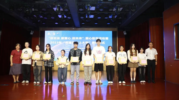 为进一步延续和深化“民建助你上大学”公益慈善品牌,民建湖州市委会开展“迎亚运 献爱心 创未来”爱心助学活动暨“民建助你上大学”捐赠仪式。作为此次活动协办方,校组织部部长施静龙、学工部副部长文旭平携张亚慧等四位受资助学生参加此次仪式。