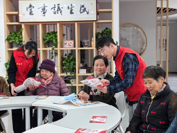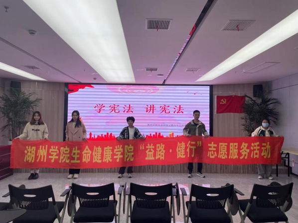 在市陌河社区,生命健康学院志愿者联合吴兴区委老干部局以宣讲、观看视频等形式,结合生活中发生的法律案例向居民细心讲解了我国宪法的相关知识,引导在场居民的讨论交流,呼吁大家自觉遵法、守法、学法、用法,增强法治思想和法律意识。