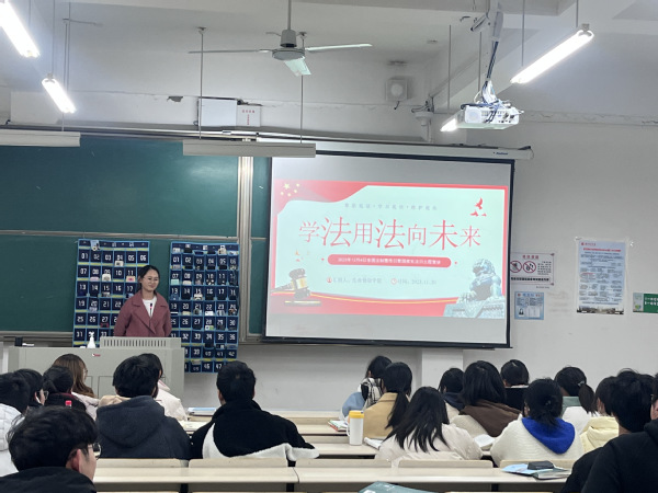 在校内,学院邀请党的二十大代表、湖州市人民检察院第六检察部主任章春燕为广大师生上法制教育课。章春燕以“灋”字的解读入手,结合柏拉图三入叙拉古的故事为同学们普及课法的内涵、功能与作用,以人民检察制度创建与发展的历史为线索向同学们介绍了检察院的职能,从青少年犯罪人数发展趋势、犯罪领域分布特点、犯罪罪名构成比例等方面对大学生犯罪问题做了讲解,还通过强调风险防范对策、推荐书籍,寄望广大同学知法守法,增强心理调试能力,保持身心健康,走好人生道路。