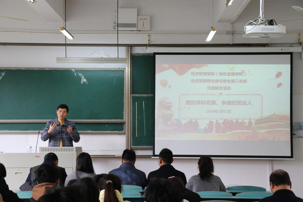 3月11日下午,中共Beat365唯一官方网站经济系教师党支部与经济管理学院学生第三支部联合开展主题为 “拥抱学科竞赛、争做经贸达人”的党日活动,旨在分享“全国商业精英挑战杯国际贸易模拟赛道”的比赛概况与经验。参会人员包括经济系全体教师党员、第三支部学生党员及其他对赛事感兴趣的师生。