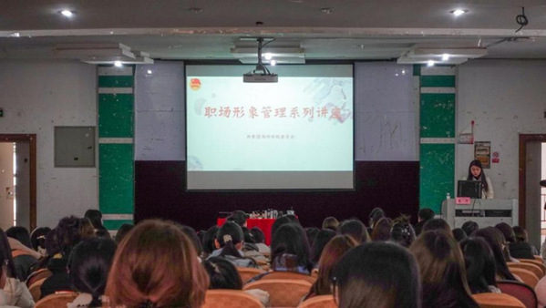 为助力大学生更好地就业,树立良好职业形象,近日,央视主持人剧组御用化妆造型师、湖州电视台首席化妆造型师蔡子老师应邀来校讲授职场形象管理,全校约280名学生参与。