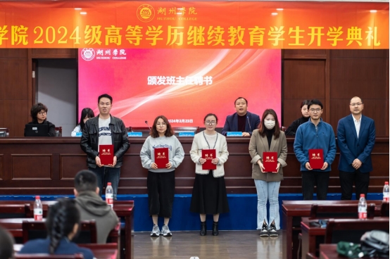 最后,继续教育学院负责人陈国锋为各新生班主任代表颁发聘书并合影留念,至此开学典礼圆满完成。