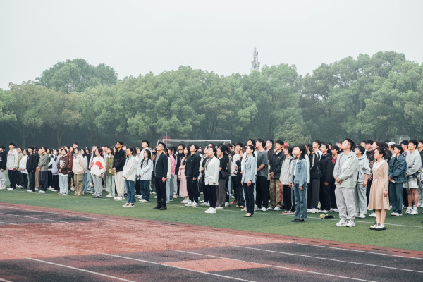 4月15日,生命健康学院在光彩体育场举行升旗仪式暨国旗下的“生命之树”党建工程思政课活动。