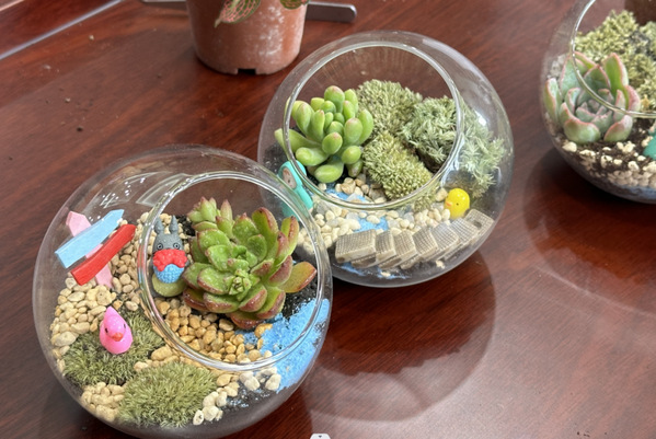 园艺疗法指利用植物或者围绕植物开展各种活动,促进人们身心健康和精神恢复的疗法。微景观制作是园艺疗法中的重要组成部分,其过程是一次心灵与自然的深度对话。从开始挑选植物、搭配装饰,再到定期的养护,帮助参与者逐渐感受到生命的力量和爱的传递。