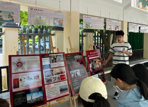 在香樟湾社区活动场,反邪教社团成员向社区青年们讲解了邪教的危害以及怎样树立总体国家安全观,加强青年爱党爱国的信念。