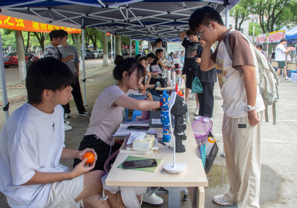 活动现场气氛热烈、井然有序。整齐的摊位一一排开,毕业生们纷纷摆出“藏品”,文创产品、学习资料、生活日用品、手办玩偶……琳琅满目的物品令人目不暇接。前来“淘宝”的同学络绎不绝。热情洋溢的学长学姐、琳琅满目的各色商品,都引得同学驻足停留,现场氛围可谓是热火朝天。