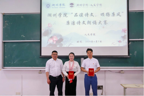 为深入学习贯彻习近平新时代中国特色社会主义思想、进一步学习贯彻党的二十大精神,弘扬中华优秀传统文化,推进清廉学校建设,营造崇廉尚洁的校园文化氛围,6月5日下午,人文学院成功举办“品读诗文,颂扬廉风”廉洁诗文朗诵大赛,纪委副书记、纪检监察室,学生工作部部长,人文学院党委书记、院长,生命健康学院党委副书记、纪委书记,人文学院党委副书记、纪委书记,湖州师范学院老师出席活动。
