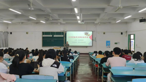 讲座中,吕老师首先从全局视角探讨考研备考规划,强调科学分配时间、明确阶段目标,并着重指出坚持与毅力的重要性,激励学子树立信心,勇攀考研高峰。随后,吕老师为同学们解析最新考研政策和院校专业初选秘籍,生动讲解了考研择校规划、考情分析技巧,使学生对考研备考有了全面深刻的认识。