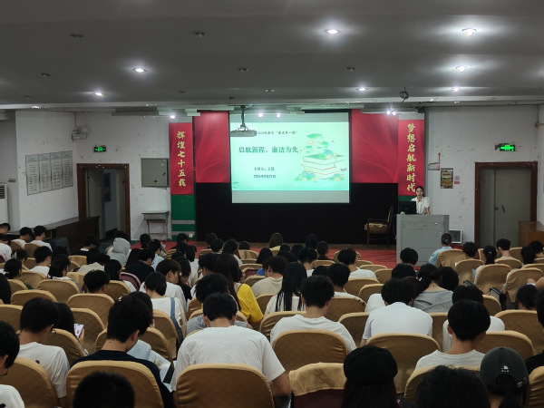活动伊始,院党委副书记、纪委书记围绕“廉洁是什么 为什么讲廉洁 怎么践行廉洁”三个方面,结合古今中外的廉洁故事,深入浅出地阐述了大学生廉洁自律的重要性,强调廉洁修养是大学生极为重要的品格。她指出,新时代同学们要筑牢信仰之基,树立正确的人生观、世界观和价值观;要常怀敬畏之心,遵守校纪校规,诚实守信、公私分明、求真务实;要志存高远、努力学习,报效祖国,为实现中华民族伟大复兴的中国梦贡献青春力量。