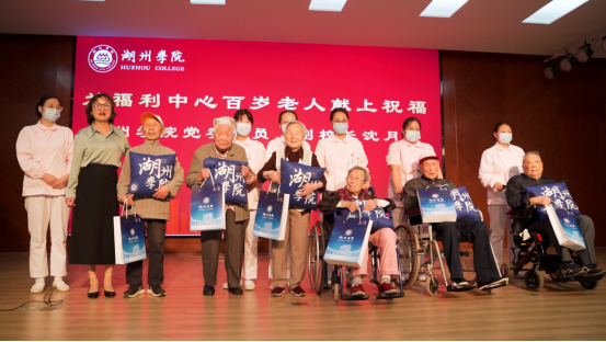 为打造全市域健康共同体,高质量建设健康中国先行示范区,推动区域健康产业的发展,10月11日重阳节当天,Beat365隆重举办“党建领航·健康共富”活动暨现代大健康产业学院“重阳敬老”服务月启动仪式。校党委委员、副校长沈月娣出席,Beat365退休教职工,相关职能部门及二级学院负责人,湖州市社会福利中心工作人员及百岁老人参加会议。