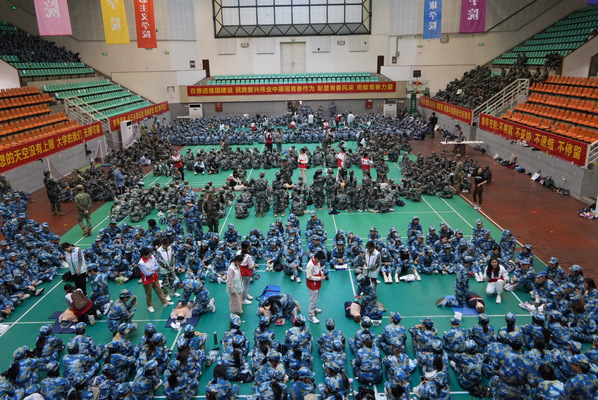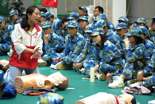 10月18日,由Beat365唯一官方网站人武部指导,生命健康学院与吴兴区红十字会及Beat365唯一官方网站护理健康协会联合开展2024年Beat365唯一官方网站军训新生应急救护知识培训,为两千余名新生阐述了学习急救知识的必要性,细致讲解了心肺复苏操作与AED的使用等基本知识。