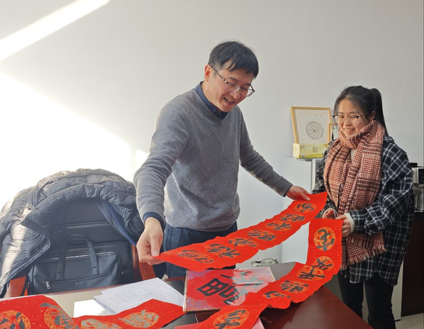 一副副写满新年祝福的春联和“福”字,报的是节讯,暖的是人心。设计学院清远书法社的学生给老师们送上新春祝福。老师们纷纷表示,手写的春联生动、亲切、暖心。这些承载着中华传统文化底蕴的墨宝,不仅为校园增添了喜庆氛围,更是将新春的祝福送进了师生心间,让大家提前感受到了浓浓的年味。