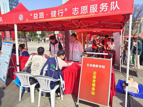 3月1日,生命健康学院“益路·健行”志愿服务团参加“实干争先 志愿同行”湖州市学雷锋志愿服务主题月活动启动仪式和志愿服务集市活动,为市民提供急救知识宣教和测量血压等暖心服务,用实际行动践行雷锋精神。