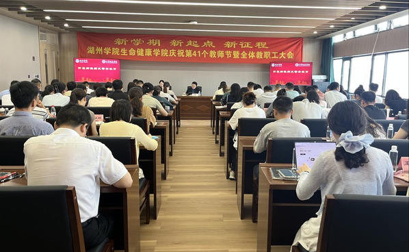 9月9日,生命健康学院召开庆祝第 41 个教师节暨全体教职工大会。学院领导班子与全体教职工齐聚一堂,共庆教师佳节,共话发展蓝图。