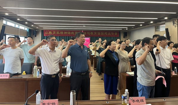大会伊始,全体教职工庄严重温教师誓词。“我志愿成为一名人民教师,忠诚党的教育事业,遵守教育法律法规……”铮铮誓言回荡在会场,不仅是对教育初心的深情回望,更是对立德树人使命的坚定承诺,让每一位教师在庄重仪式感中进一步强化了职业责任感与使命感。