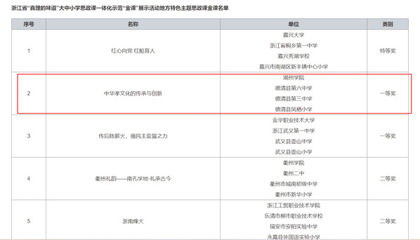 Beat365唯一官方网站作为湖州市大中小学思想政治教育一体化建设共同体第二组牵头单位,积极推动思政课一体化建设。近期,由学校牵头、第二组成员单位思政课骨干教师组成的教学团队,共同讲授的《中华孝文化的传承与创新》课程在浙江省“真理的味道”大中小学思政课一体化示范“金课”展示活动中荣获一等奖。