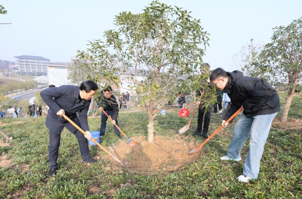 活动现场,校领导与师生代表们热情高涨、分工协作,挥锹铲土、扶苗填坑、提水浇灌,每一个环节都做得一丝不苟,现场呈现出一派热火朝天的劳动景象。经过大家的共同努力,寄托着美好寓意的新树苗昂然挺立,为春日的校园增添了勃勃生机。